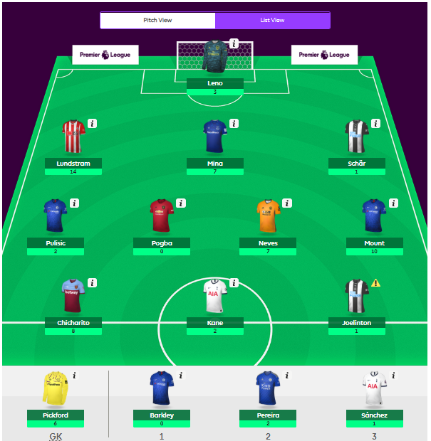 Now, I planned to make my decision on who to focus on random, but with Sein’s massive score, it just had to be him. He brought in both Lundstram and Mount for the week, and both delivered massive points. Alongside Chicharito, Neves and Mina, his team fully delivered and with the likes of Kane, Pogba and Barkley, he seems set to follow up with the points next week.